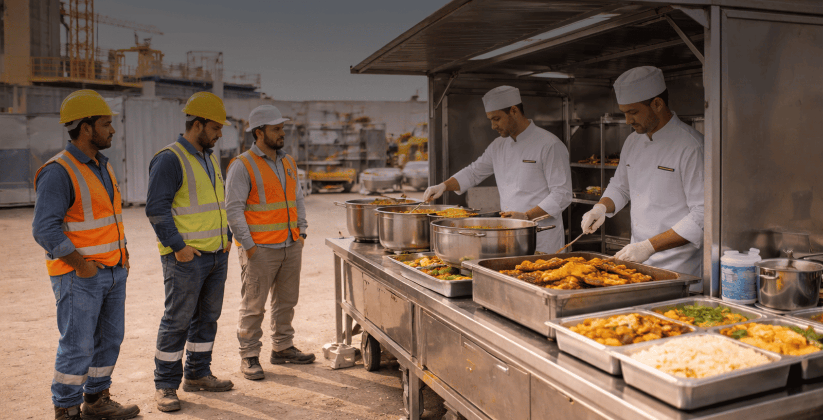 We provide comprehensive catering services for corporate offices, factories, labor camps, construction sites, and remote industrial locations. Our services include daily staff meal catering, labor camp catering, camp facility food services, bulk meal box supply, and catering operations management.